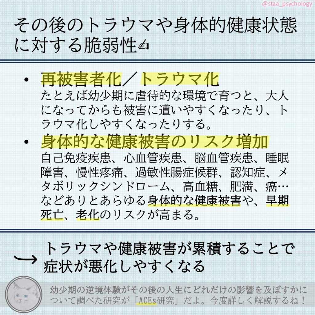 • その後のトラウマや身体的健康状態に対する脆弱性