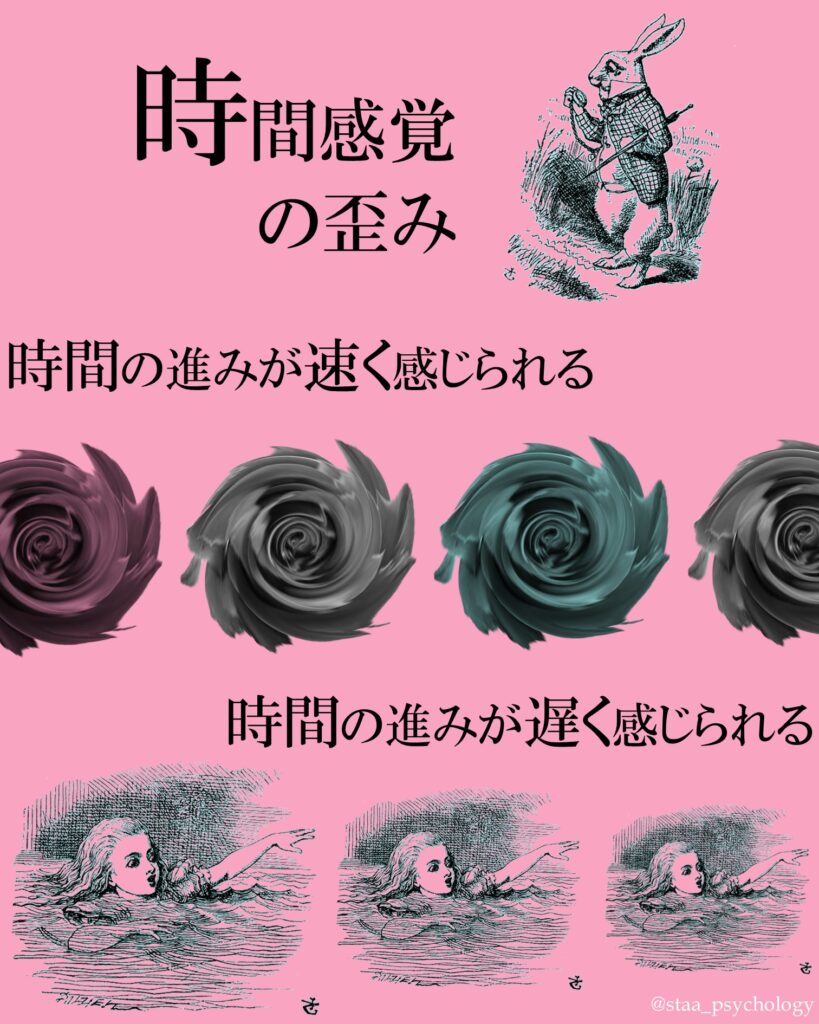 - 時間感覚の歪み(時間が遅く感じる、速く感じるなど)